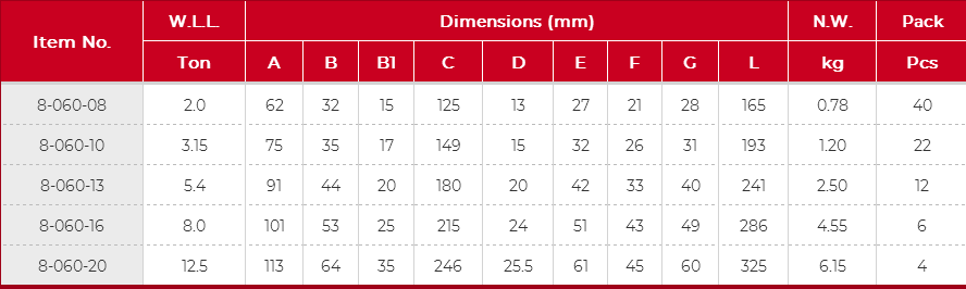 鉤子是設計用于與80級合金鋼鏈條、鋼絲繩